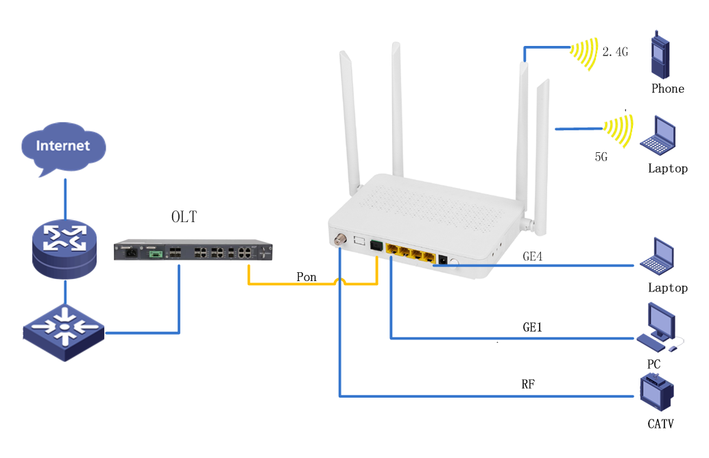 interface: 1* G/EPON+4*GE+2.4G/5.8G WLAN+1*RF